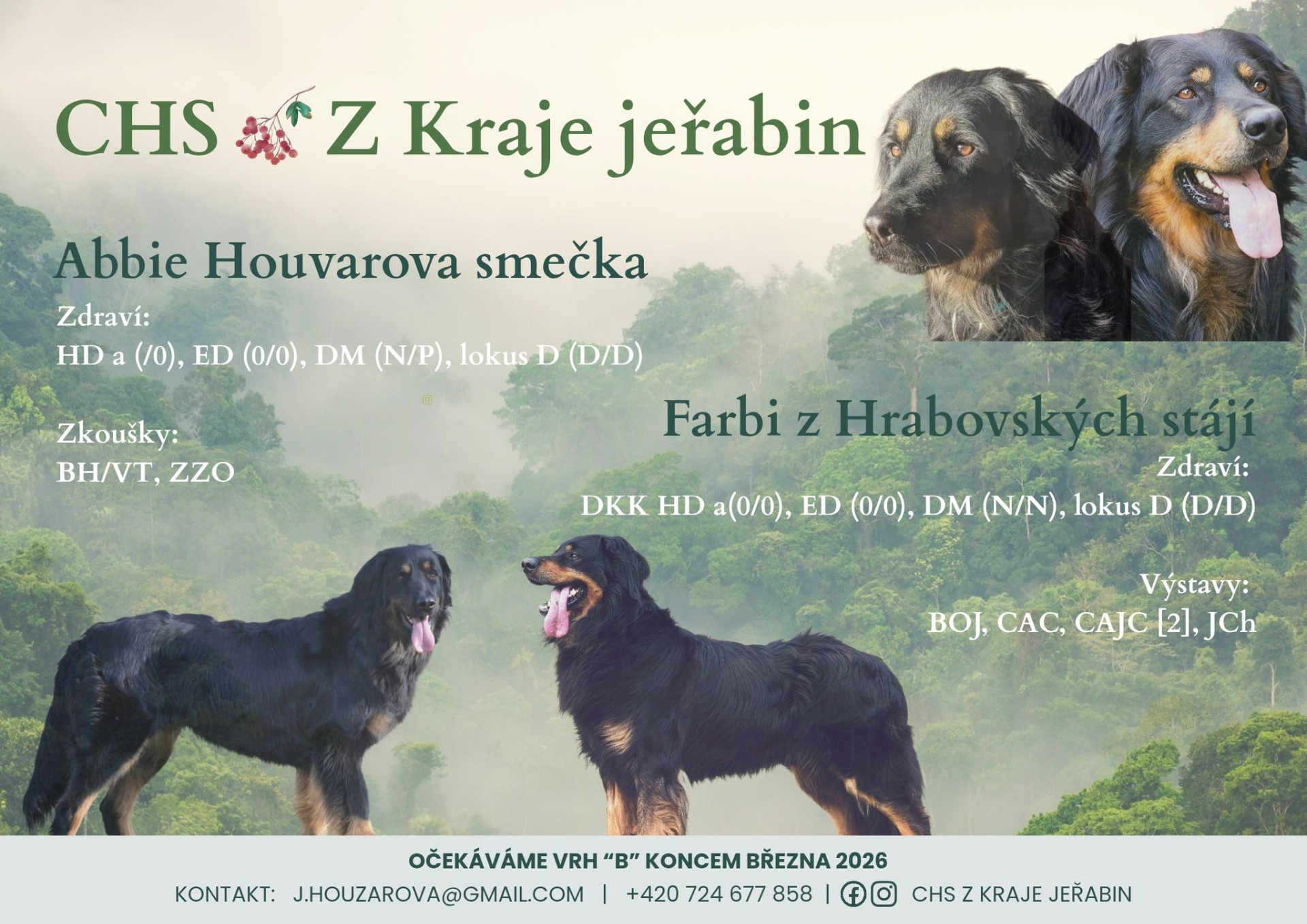 Abbie Houvarova smečka porodila 25.3.2026 čtyři krásná štěňátka, ve složení samích feneček černé se znaky.